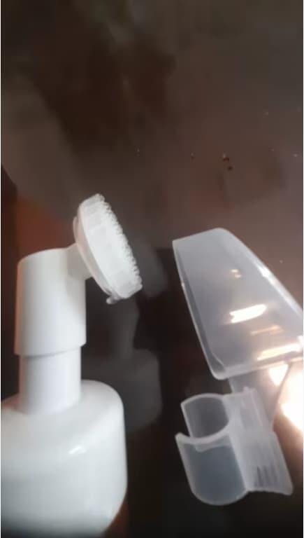 Gently press the brush head and squeeze to release the foaming cleanser.